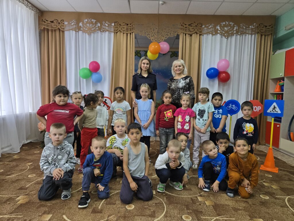 04.09.2025 г. в рамках II этапа профилактической акции «Внимание, дети!», в соответствии с планом мероприятий по профилактике детского дорожно-транспортного травматизма, сегодня наш детски сад посетила Струганова Алина Олеговна — инспектор по пропаганде БДД ОГИБДД ОМВД России «Тамбовский» , которая напомнила дошкольникам о важности правил дорожного движения для юных пешеходов. Вместе с сотрудником Госавтоинспекции дети повторили дорожные знаки, участвовали в игре «Красный, желтый, зелёный».